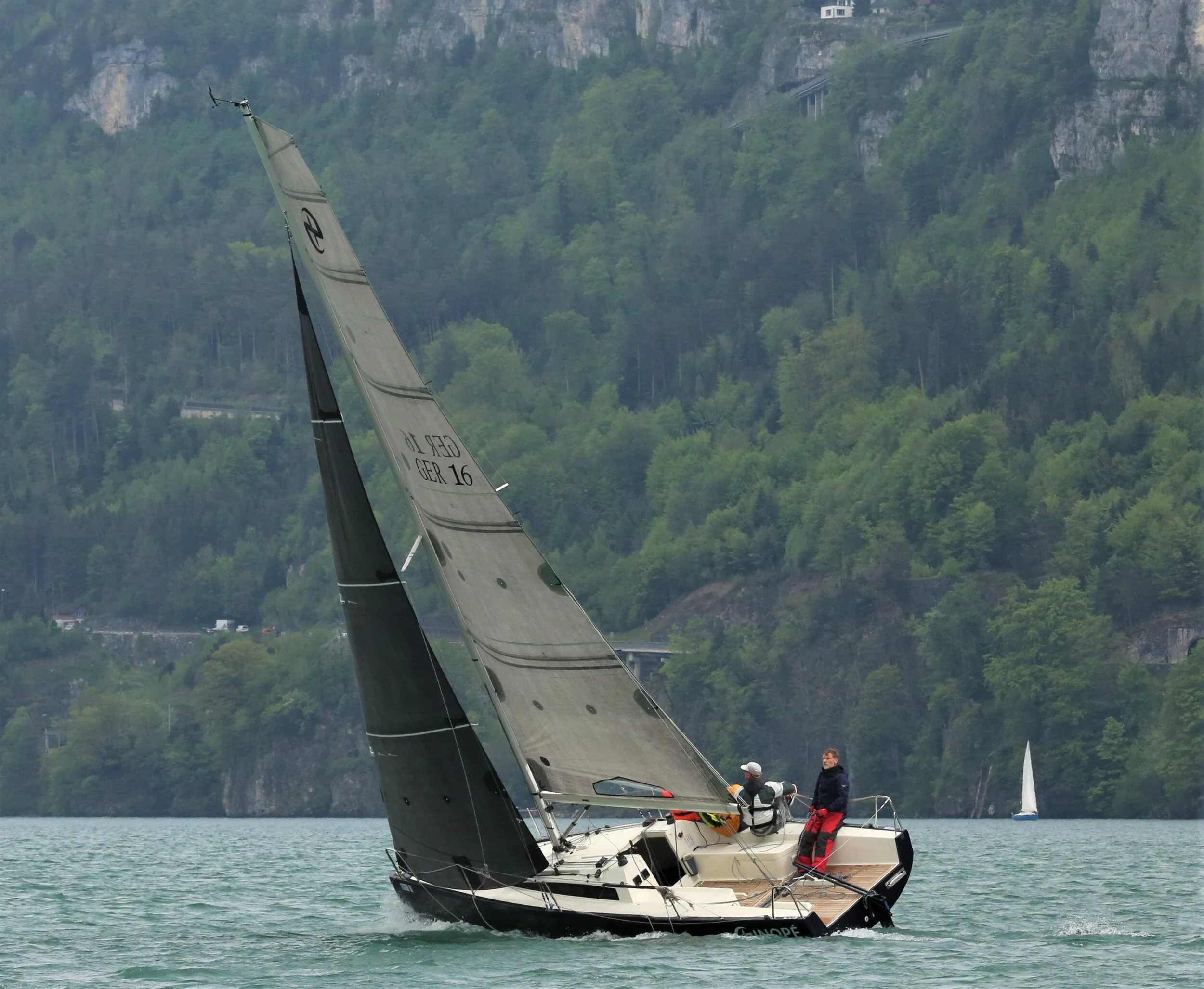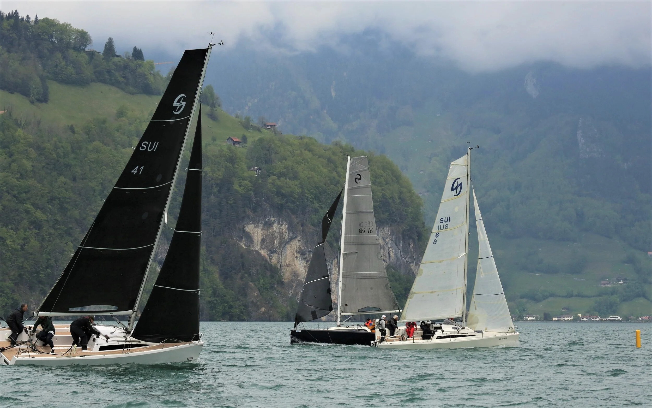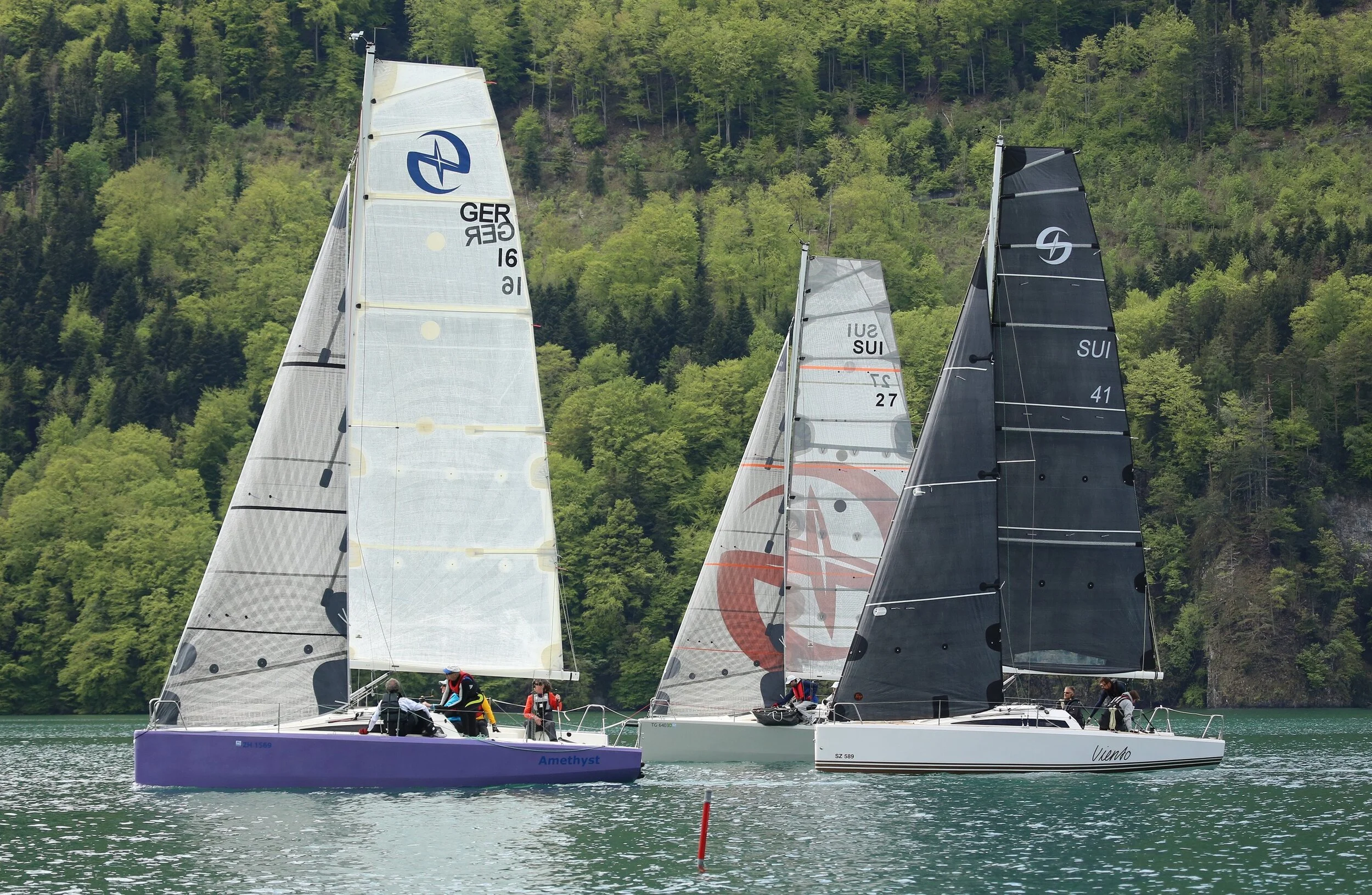 Es ist immer wieder erstaunlich, wie gross die Lernfortschritte innerhalb von fünf Tagen sind, wenn die Bedingungen uns fordern. So startete das Team der Zürich-Versicherung mit einer gemischten Crew von Hobby-Seglern ohne jegliche Gennaker-Erfahrung. Bereits nach einer Woche, fuhren sie nach einer steilen Sonnen-Schuss-Lernkurve alleine bei anspruchsvollen Bedingungen den Urnersee hinunter. Aber auch Teams wie die Améthyste, welche schon ihr sechstes Training absolvierte, perfektionierten sich in den Manövern, Taktik und Speed und waren zusammen mit dem Klassensieger, der Sinopé, die zwei Benchmarkschiffe im Feld, die es zu schlagen galt! Im Fokus standen Bojenmanöver an der Luv- und Leetonne, Startpraxis und Regattataktik mit Trimmeinstellungen und Speedvergleichen.